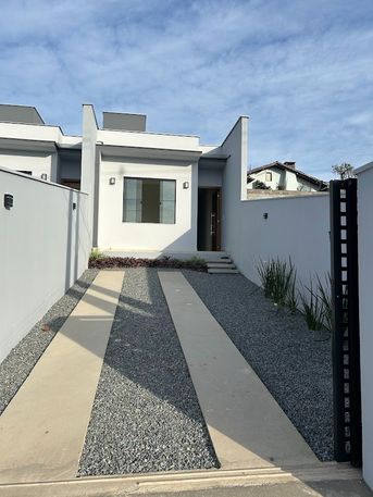 Imagine viver em um lar novinho, moderno e com cada detalhe pensado para o seu conforto. Essa casa geminada com 60m² é perfeita para quem busca qualidade de vida e praticidade no dia a dia. 📍 Localização estratégica: próxima a escola, creche, supermercado e transporte público. 🛏 2 quartos 🍽 Sala e cozinha integradas – ambiente amplo e funcional 🧺 Lavanderia 🚿 Banheiro social com nicho 🍖 Churrasqueira 🌿 Espaço de terreno nos fundos 🚗 2 vagas de estacionamento 💎 Acabamentos: massa corrida, portas internas em laca, porta externa em madeira maciça, porcelanato, portão de alumínio. 💰 Apenas R$ 290 mil – financie e conquiste seu sonho! 📲 Entre em contato agora e agende sua visita. Sua nova vida começa aqui! “A disponibilidade e os valores dos imóveis estão sujeitos a alteração sem aviso prévio.” Imóvel com registro no RI de Guaramirim.