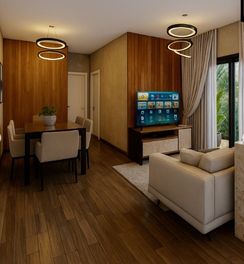 O apartamento ainda possui lavanderia, banheiro social e vaga de garagem.