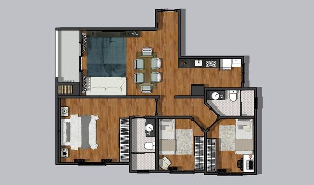 2 quartos ou 1 suíte + 2 quartos;