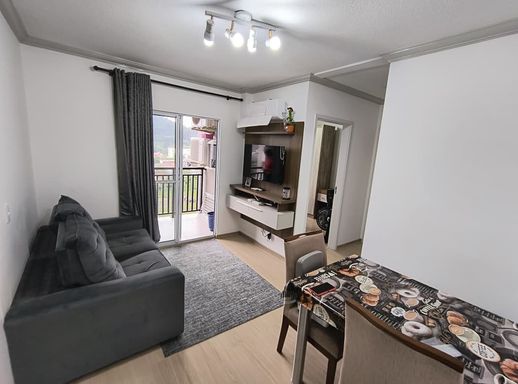 Apartamento com 1 suíte, 1 quarto, sala de estar/jantar, cozinha, lavanderia, banheiro social, sacada com churrasqueira, garagem.