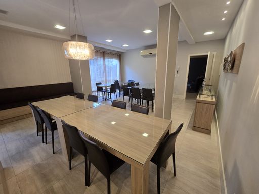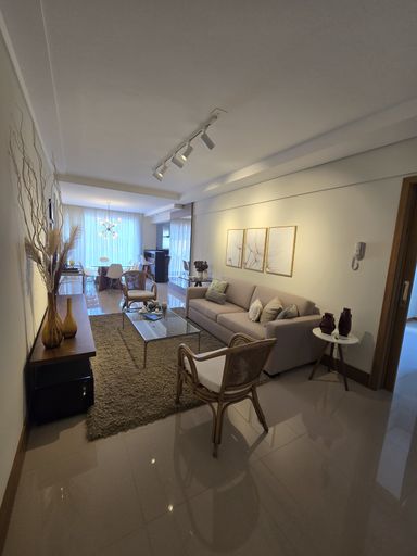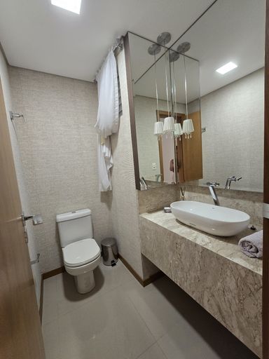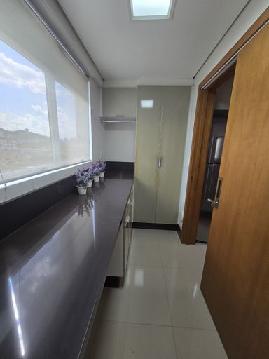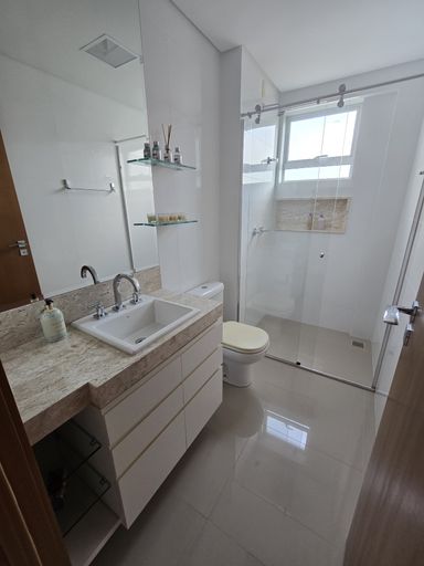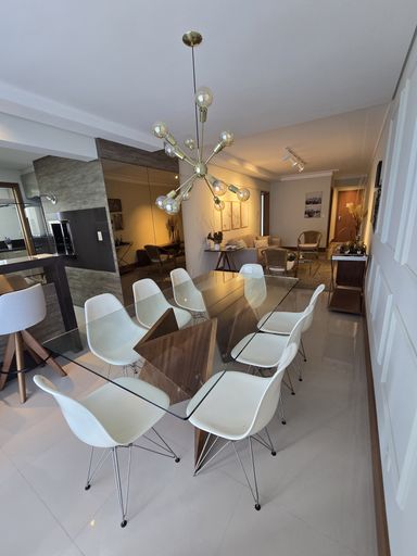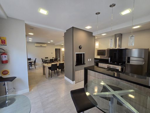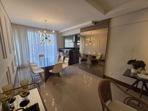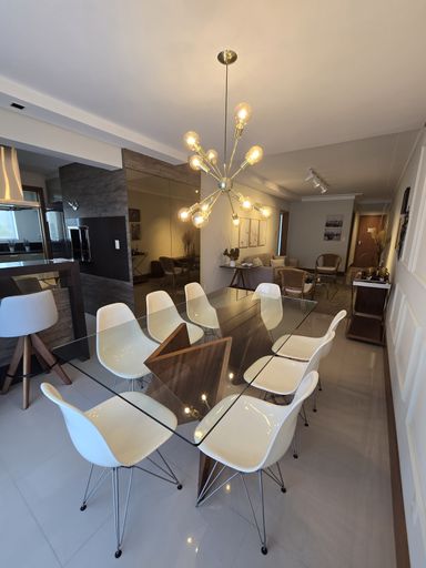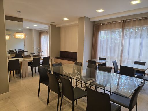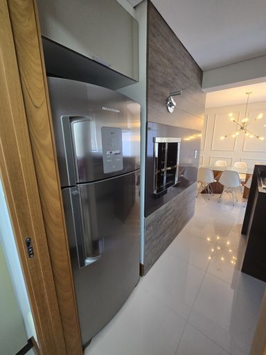 Apartamento com 1 suíte, 2 quartos, sala de estar/jantar integradas, cozinha com churrasqueira, lavanderia, lavabo, banheiro social, sacada, 2 vagas de garagem.