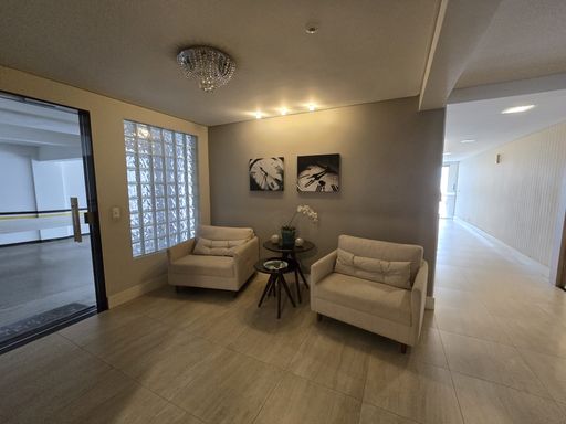 Prédio com elevador, salão de festa mobiliado, playground.