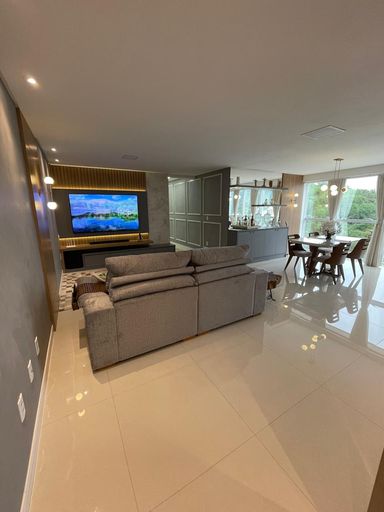 Apartamento com 1 suíte, 2 demi suítes, amplo living com cozinha integrada, lavabo, sacada, 2 vagas de garagem.