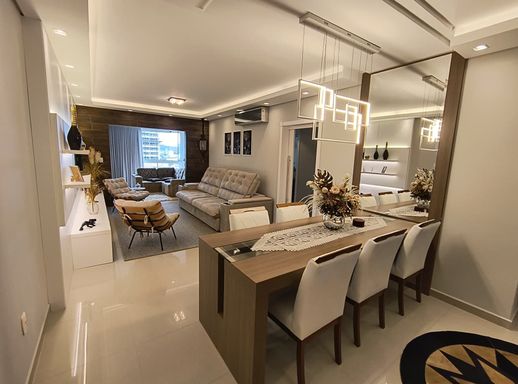 Apartamento com 1 suíte, 2 demi suítes, living com cozinha integrada e sacada, lavabo, vaga de garagem simples ou dupla.