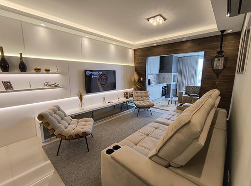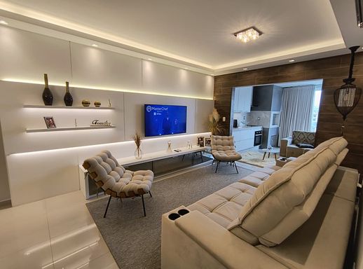 O apartamento está semi mobiliado, ficando todos os móveis sob medida e aparelhos de ar condicionado, o que agrega ainda mais valor e praticidade para quem deseja mudar-se sem preocupações.