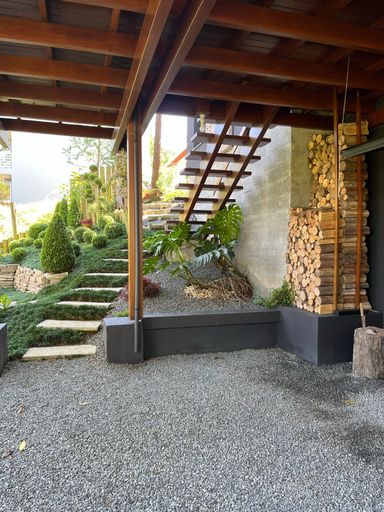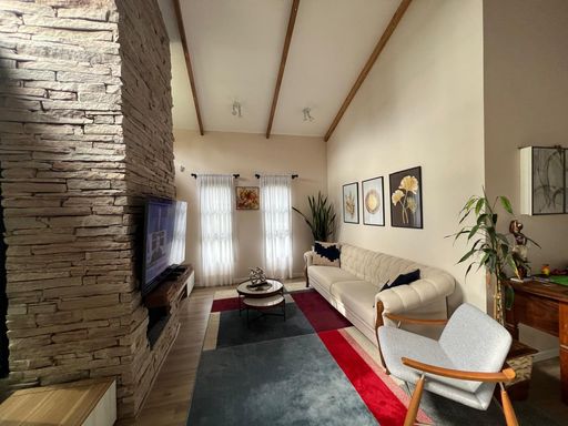 ➡️Piso inferior com 2 quartos, banheiro social, lavabo, lavanderia, sala de TV com lareira, sala de jantar e cozinha integradas, garantindo praticidade e aconchego no dia a dia.