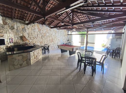 Esta residência impressiona pelo tamanho, conforto e estrutura de lazer.