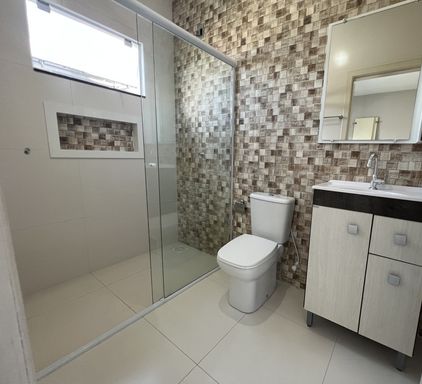 Na área íntima, a casa dispõe de 1 suíte + 2 dormitórios, garantindo conforto e privacidade para toda a família. Conta ainda com banheiro social, lavanderia independente e garagem coberta para 2 carros.