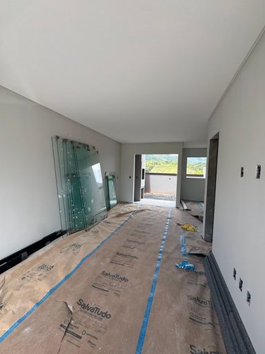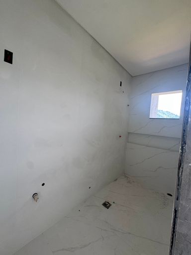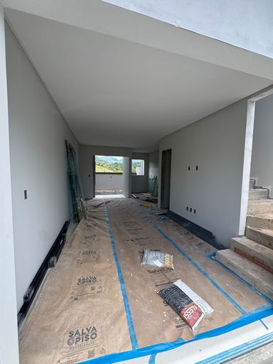 Massa corrida, rebaixo em gesso com iluminação LED em todos os ambientes, piso porcelanato e vinílico, portas laqueadas brancas e portão automatizado.